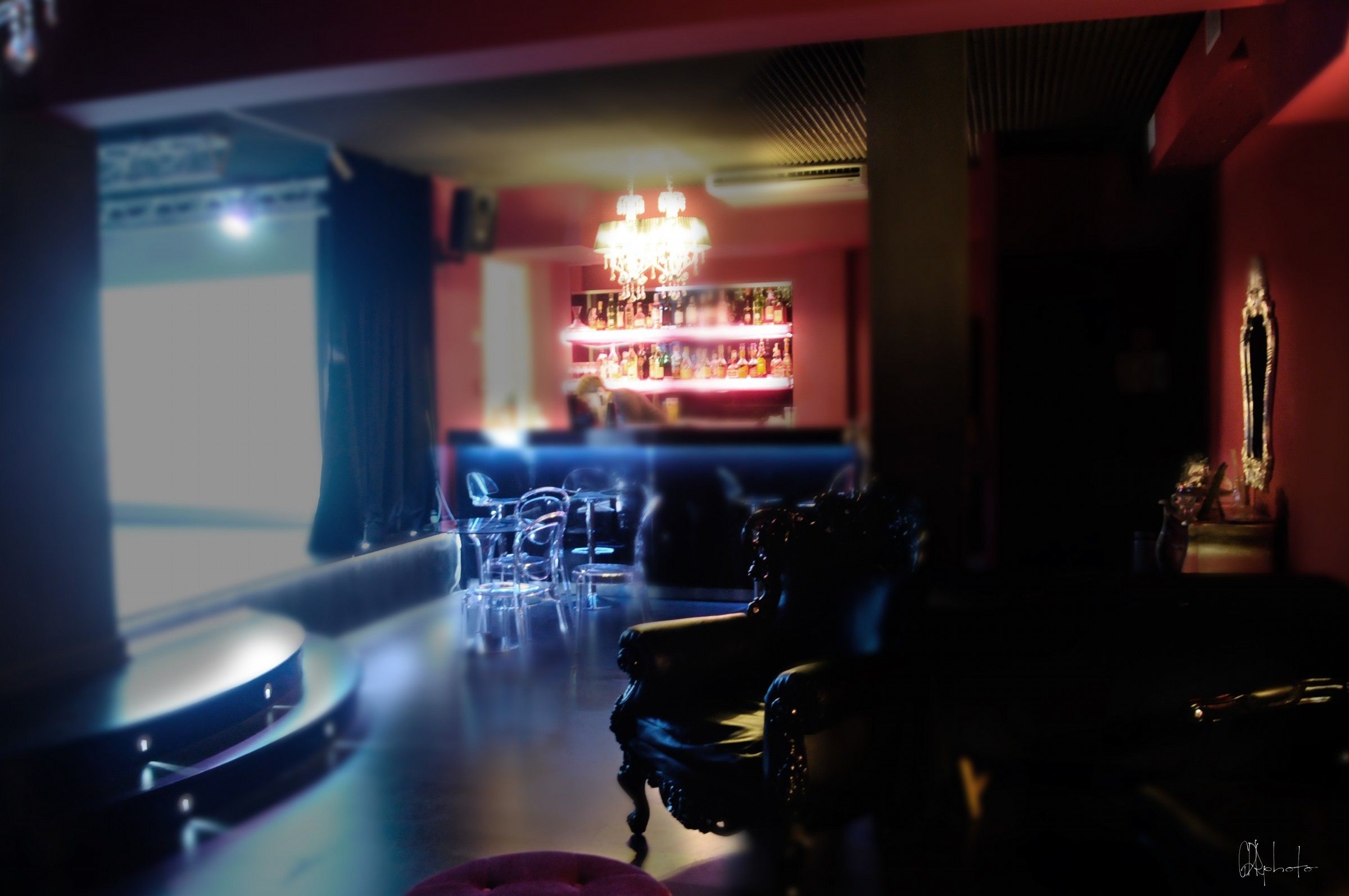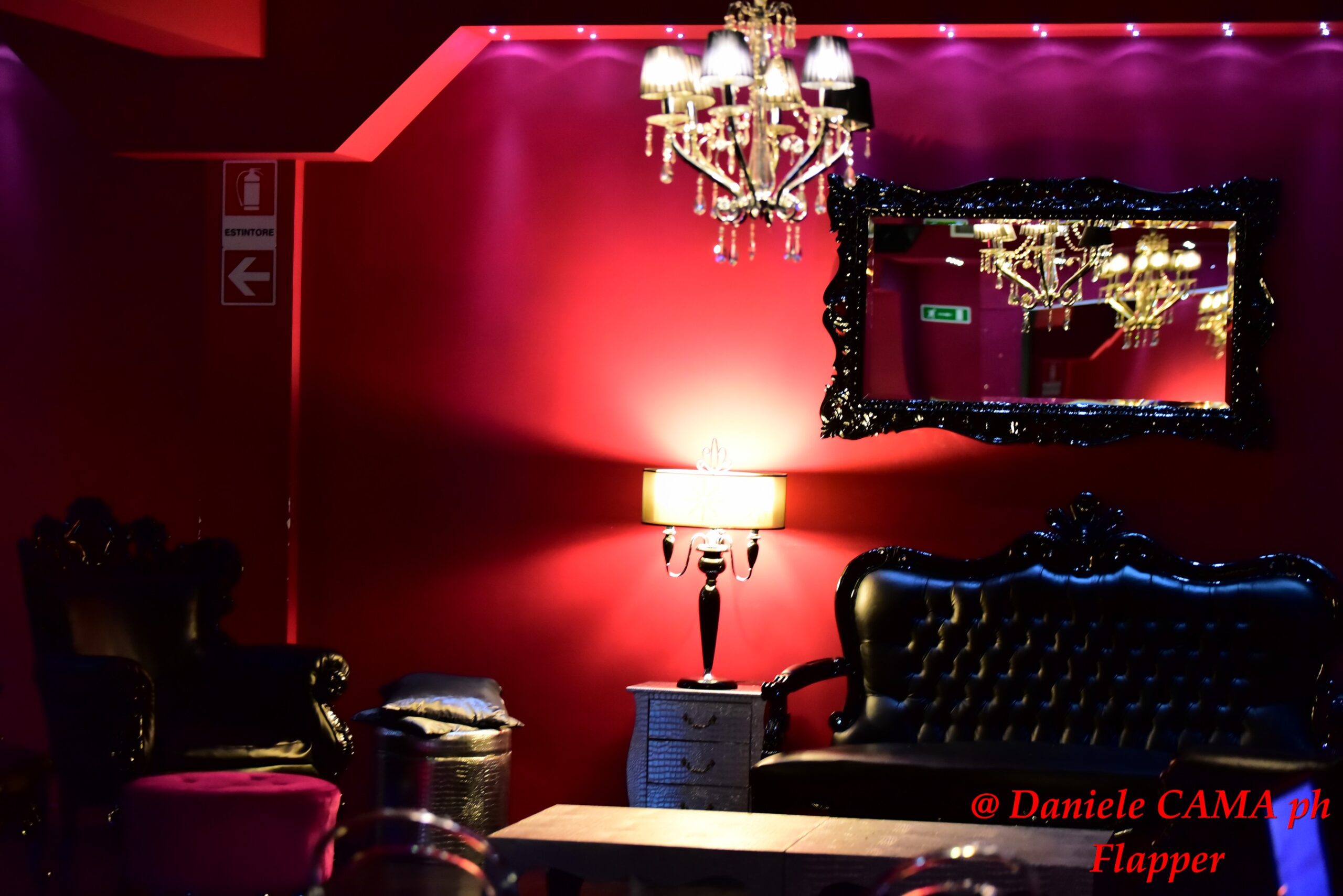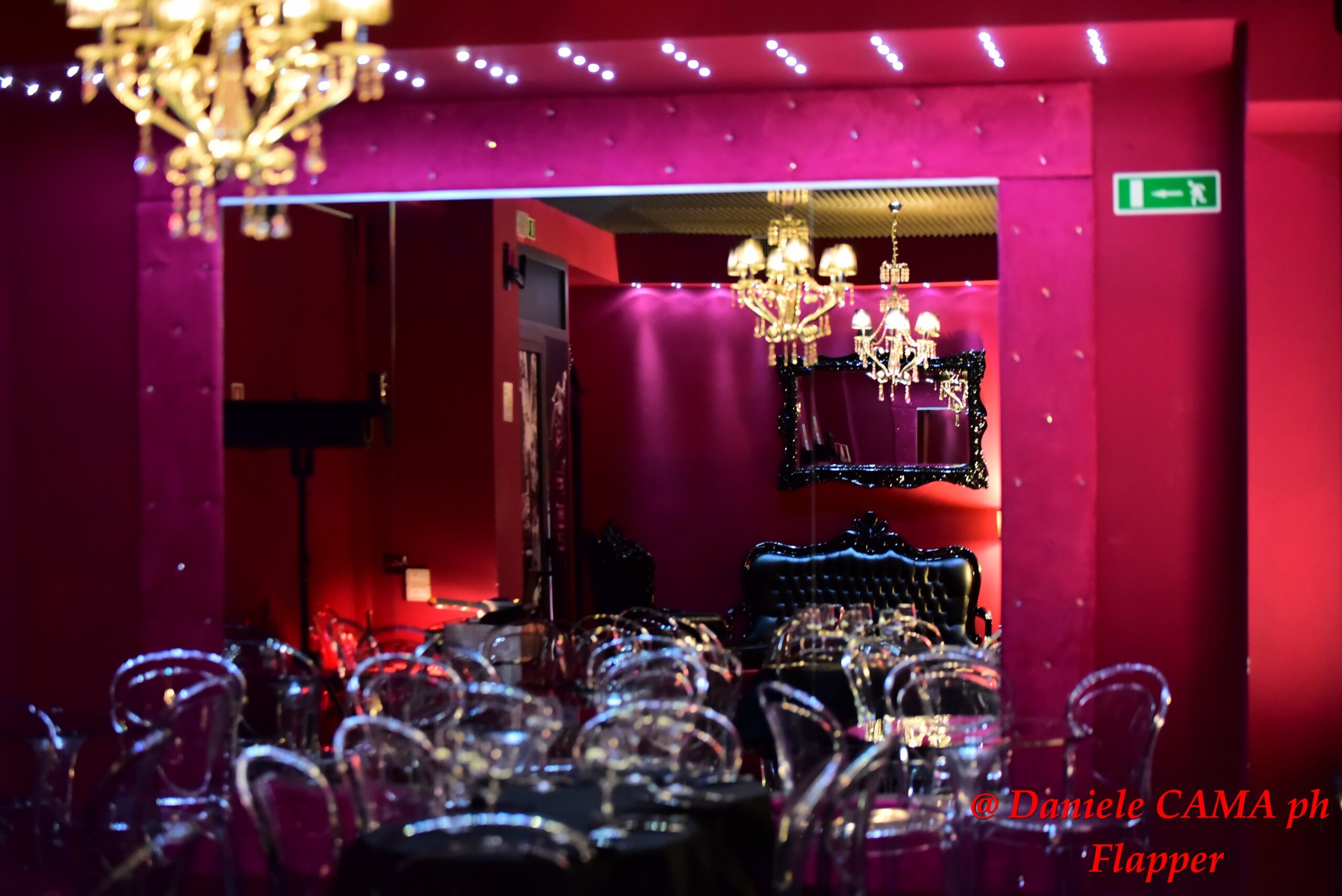 Appena si entra nel locale, infatti, si viene travolti da quest’atmosfera quasi irreale, ironicamente sfarzosa, che anche nella sua eleganza esasperata e nella sua ricercata originalità, riesce a risultare calda e accogliente. Arredato con enormi lampadari di cristallo, sedie di design, divani tempestati di Swarovski, pareti fucsia e nere.