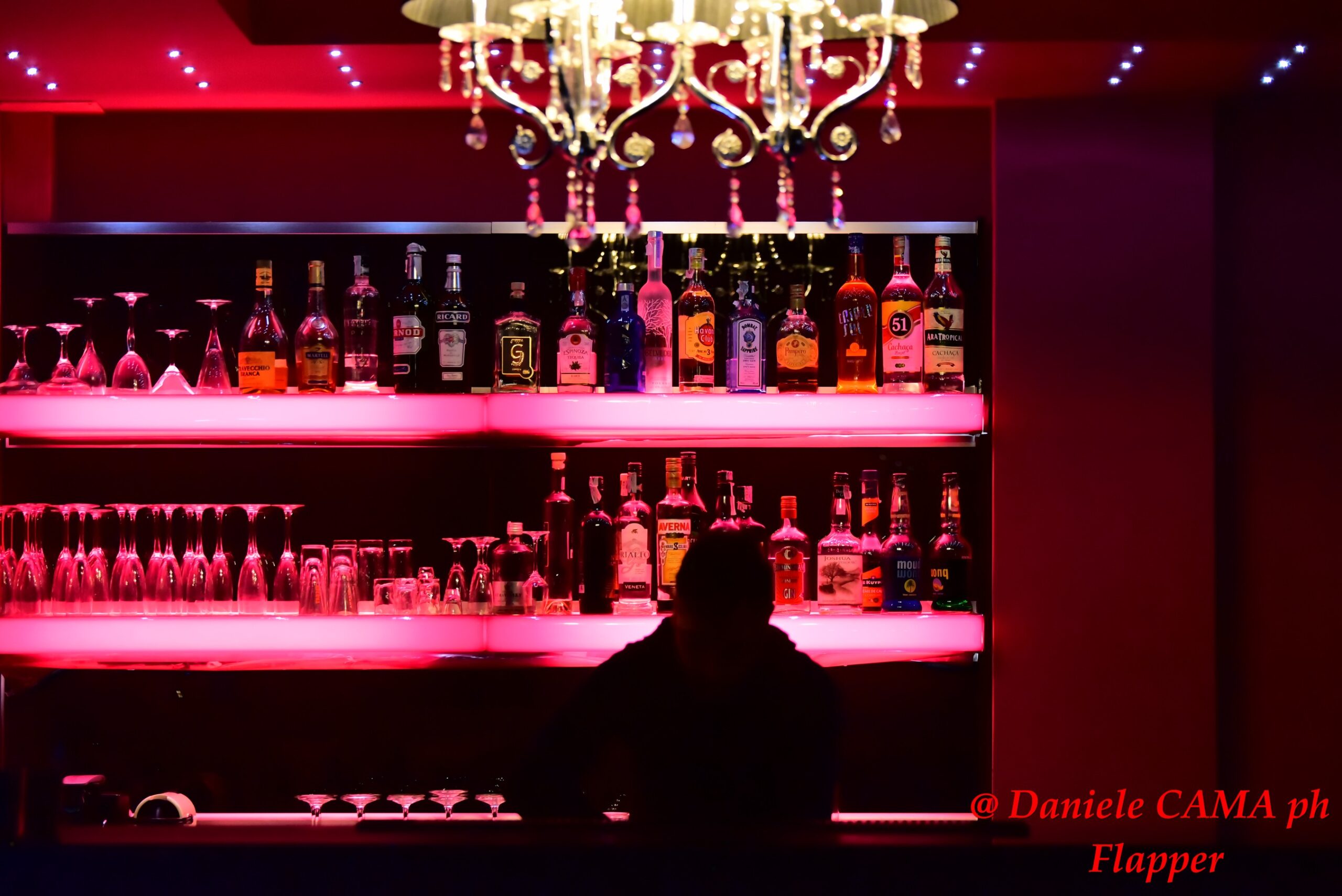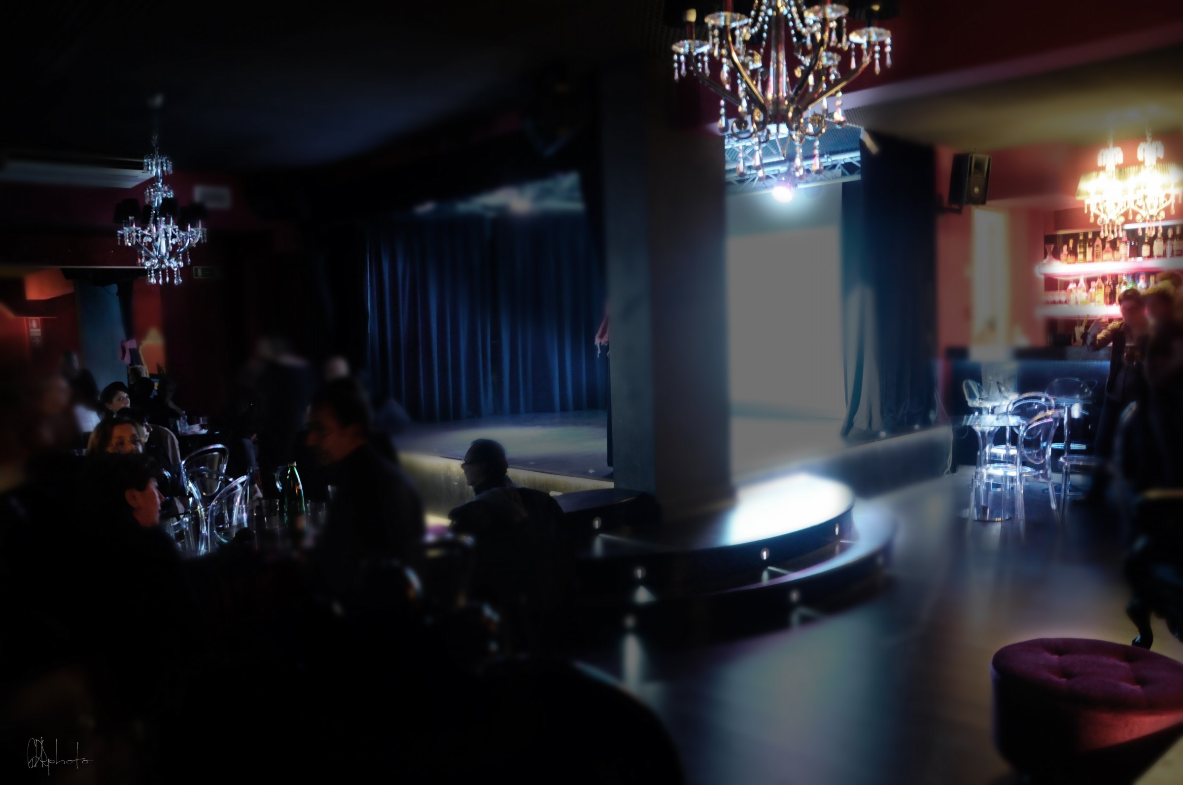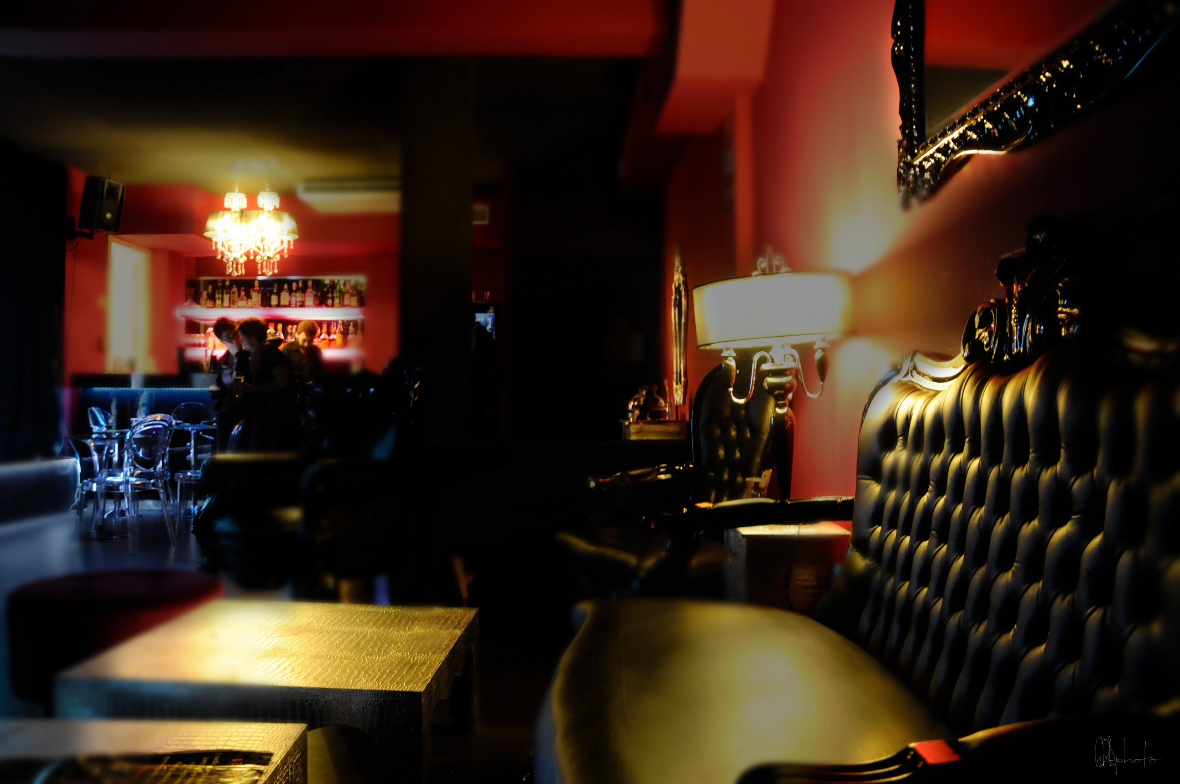 Appena si entra nel locale, infatti, si viene travolti da quest’atmosfera quasi irreale, ironicamente sfarzosa, che anche nella sua eleganza esasperata e nella sua ricercata originalità, riesce a risultare calda e accogliente. Arredato con enormi lampadari di cristallo, sedie di design, divani tempestati di Swarovski, pareti fucsia e nere.
